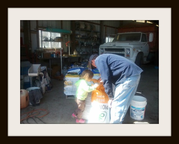 Today I watched as MV filled the planter with corn seed, and this is the first planting season we are only a few yards away from the shed. As I watched him with PV it makes me happy we are here. He opens the bag of corn seed, cautiously tells her not to touch the seed as it’s treated. She is only slightly taller than the corn seed bag, as she is only 3 years old, tipping her head over to look inside, Daddy explains how he will put it in the planter and plant it in the ground.