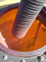 One of the tanks holds seed while the other one holds fertilizer. It is applied at the same time when drilling the wheat.