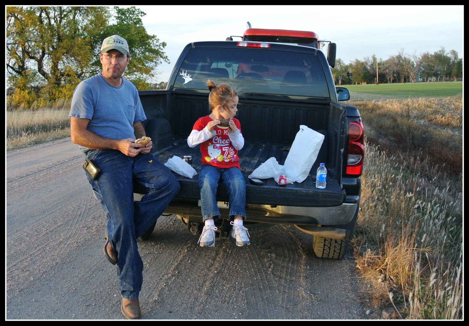 It was ate in the countryside, next to a Milo field and combine, while sitting on a tailgate enjoying the fall evening as the sun set. There was only a slight breeze, which is not the normal if you have ever been in Kansas for very long!
