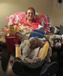 My Mom with her gift from all her children & grandchildren! Each day in 2013 she will have a “little piece of each of us” with her! She has one “item” to open each day!