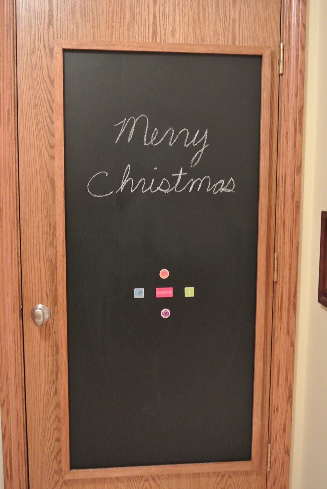 I have wanted a chalkboard on our “always used door” for sometime now.