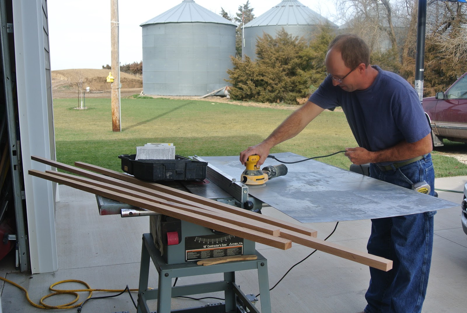 | Milton sanding the sheet metal. |