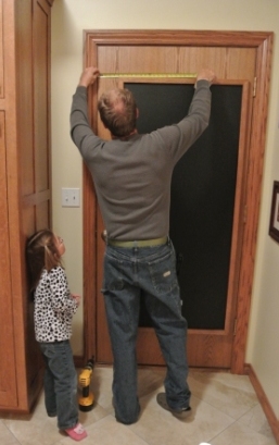 | The plain door! Measuring! See Daddy’s little helper!
