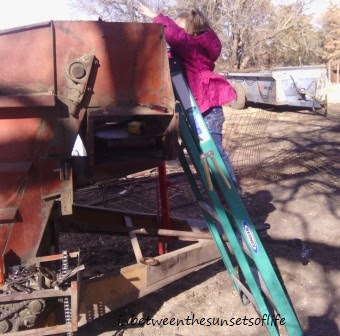 and work on the feed wagon! Milton snapped this shot of our little farmer!
