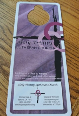 The church we attended had an evangelism outreach planned for that Sunday. We could have easily left that Sunday without participating.They were taking door hangers (below) and hanging them on people’s doors inviting them to attend. Each person was to take 5 and distribute them. Milton said during the service, let’s take them and do it before we leave town!