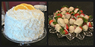 | Desserts were Orange Coconut cake and White Chocolate Strawberries! |