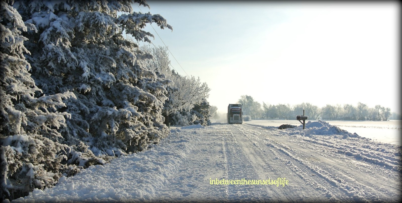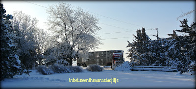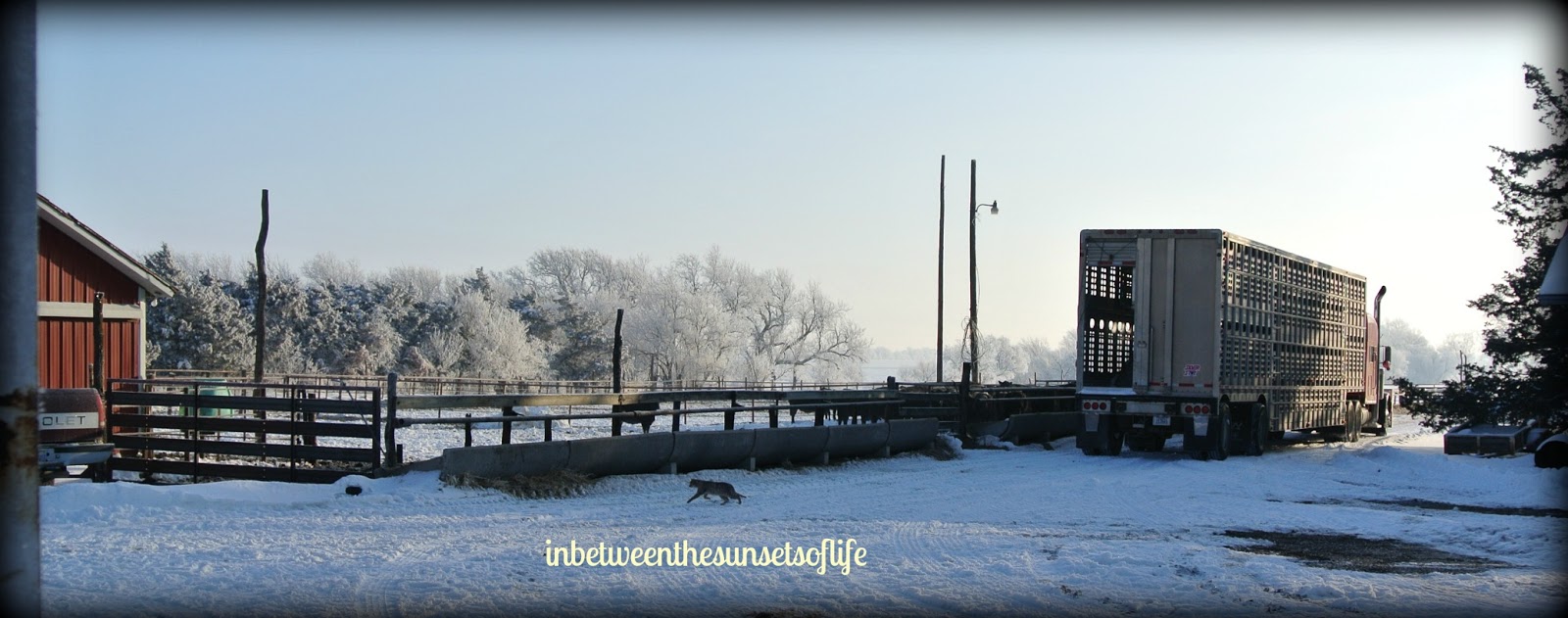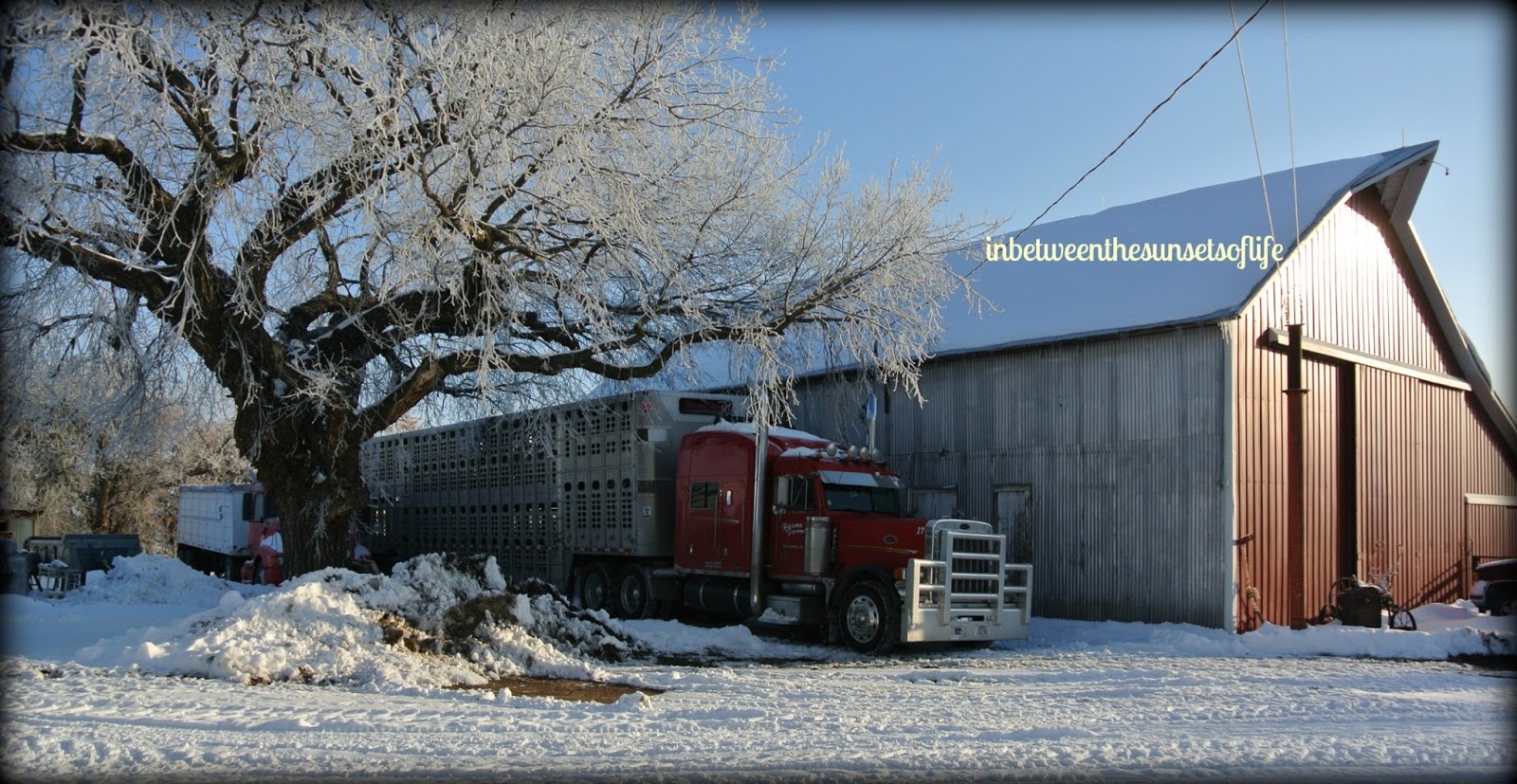 There were three semi trucks at our farm to load up the 193 head of cattle to be sold. This is number two, waiting his turn! The other one was out on the road by house!