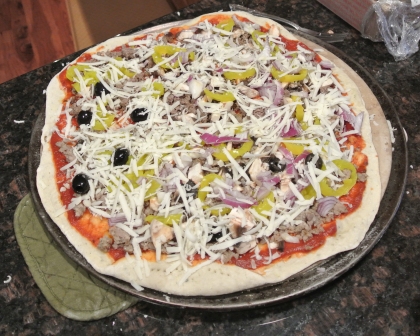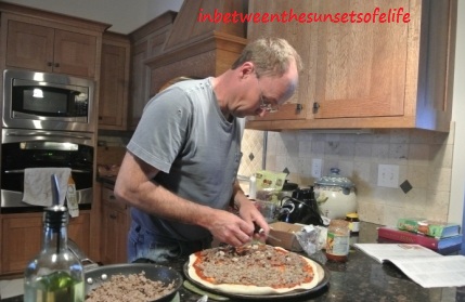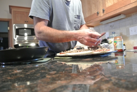 He always puts cornmeal on the pizza stone too.