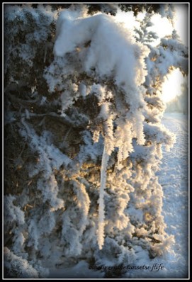 | This one, where the glimmer from the sun is on the ice covered trees, this picture doesn’t do it justice. It was breathtaking. |