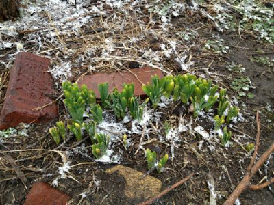 I am writing this on the first day of daylight saving’s time “Spring Forward”. As I peer out my window, I see the ever hopeful green tops of my lilies looking for warmth and sun. But, sadly, they are slowly being surrounded by the white of the