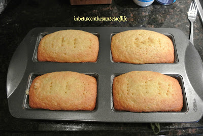 4.Pour into prepared loaf pans and bake 35-45 minutes, depending on the size of loaf pan.