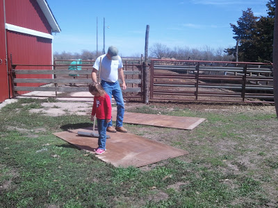 The chicken house/coop is nothing fabulous by any means. But it was free, it’s sturdy, and it was in the in laws farmyard! 🙂 I figure if we are still into chicken farming, PV & I have a pet project next spring. I think red metal with white trim would be cute. Milton plans to build a fence pen but of course they aren’t in need of it yet and we ran out of time. Corn planting is hopefully going to begin this week!