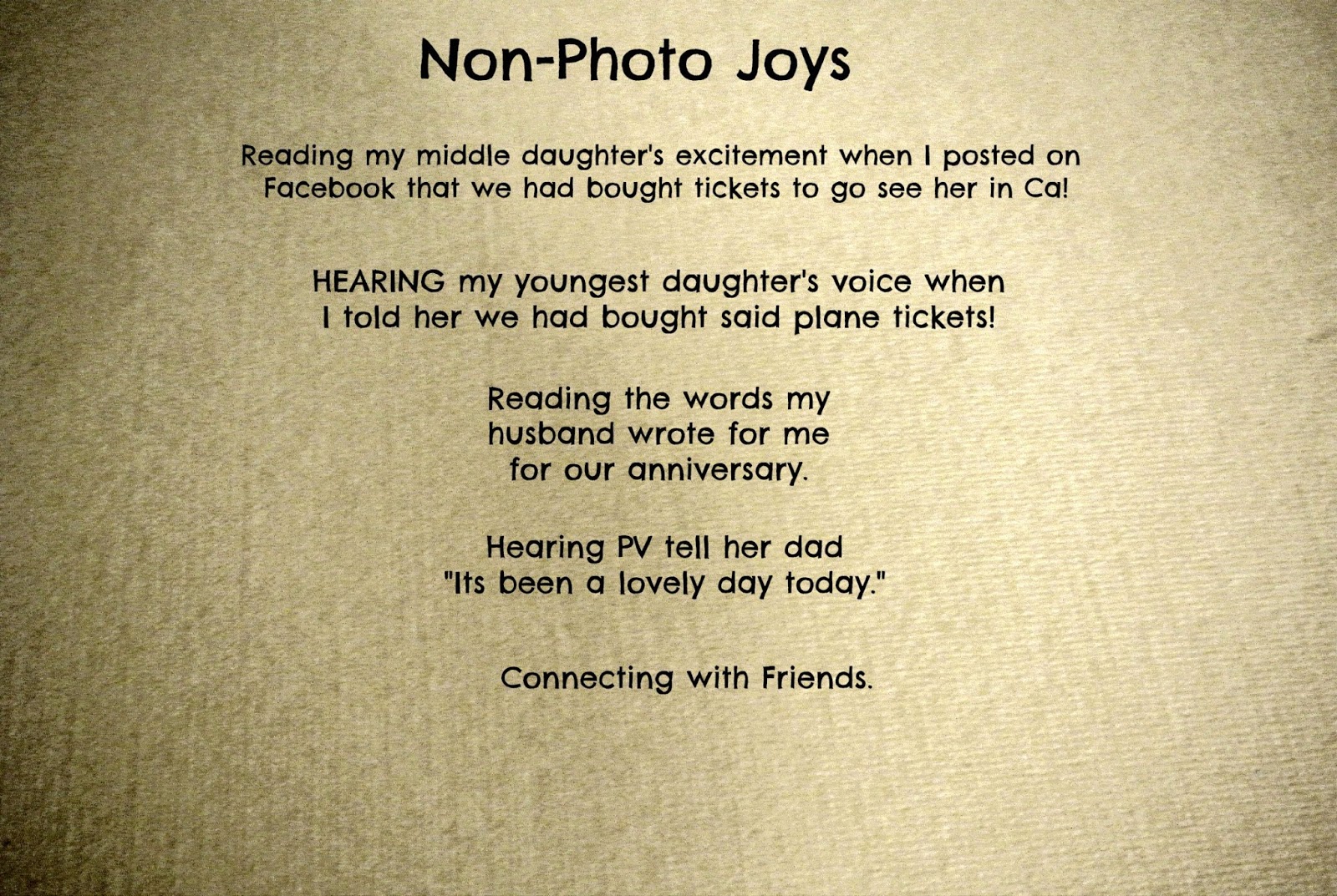 2016 Things That Brought Me Joy April 14, 2013 In Between the Sunsets of Life The kindness of others. My husband & I found these delish candies while dating, it’s kinda “our thing”! Receiving this from my beloved for our 10th anniversary. Making this memory with my little girl. It was a very blessed past week for me & my family!We thank for the Lord as always! Julie Rate this:Share this: Click to share on Facebook (Opens in new window) Facebook Click to share on Pinterest (Opens in new window) Pinterest Click to email a link to a friend (Opens in new window) Email More Click to share on X (Opens in new window) X Like Loading... Related Published by In Between the Sunsets of Life Farm life View all posts by In Between the Sunsets of Life Share this: Click to share on Facebook (Opens in new window) Facebook Click to share on Pinterest (Opens in new window) Pinterest Click to email a link to a friend (Opens in new window) Email More Click to share on X (Opens in new window) X Like Loading...