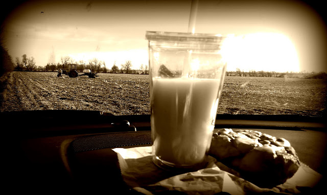 PV & I were home today since it’s Wednesday.  By the time we got up and around he had already been planting for a couple hours.  I decided we would run to our little town and grab some donuts.  We took Daddy breakfast in the field, not the homemade type, but I think he enjoyed it just the same! 🙂