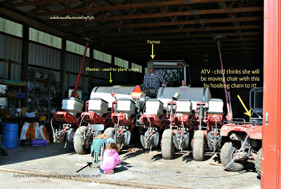 Obviously, as responsible parents we did not allow the 5 year old to drive the ATV. Her legs are too short anyways, but in her imaginary farm world she did JUST that! 🙂
