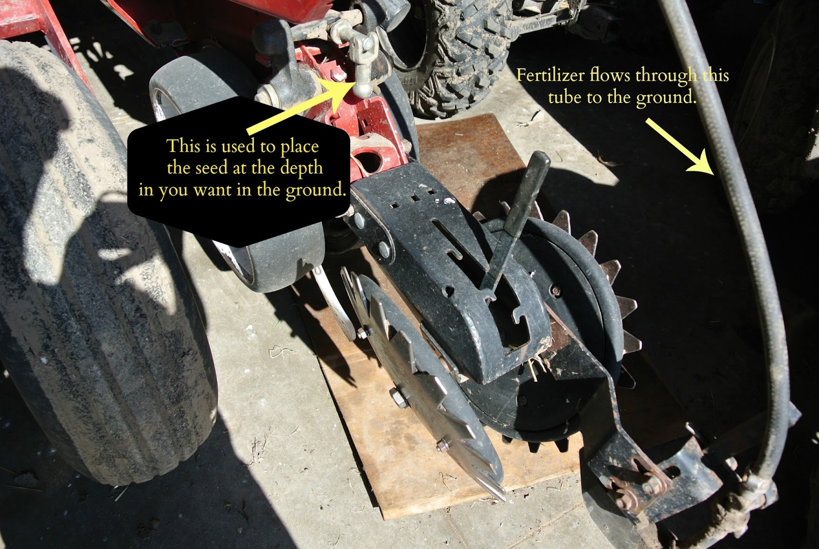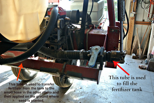 Tanks: Holds the liquid fertilizer that is applied on the soil where the seed is planted.
