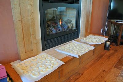 As soon as I arrived home from church, I took the very lovely dough and rolled it out!  It really was a nice texture and rolled out quite nicely!  Then I fired up the gas fireplace so they would rise nicely! Our house retains the cooler temperatures and I didn’t want them to fail now!