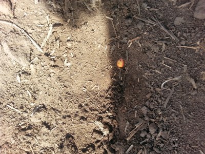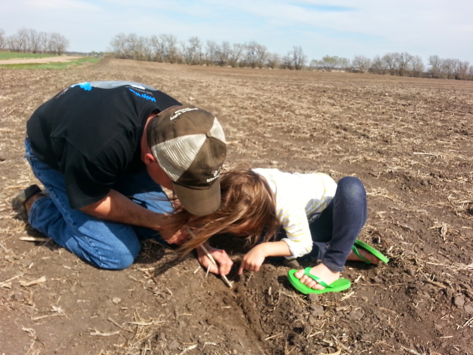 | Checking the corn that her Dad planted about 9 days ago. |