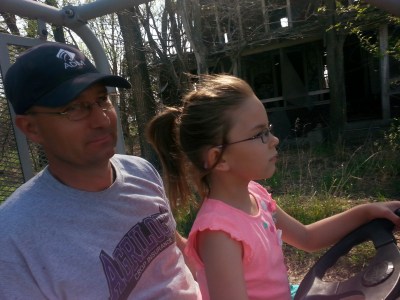 My Father in law was moving some dirt around in the pond area. We stopped to see how it was going and visit a bit.