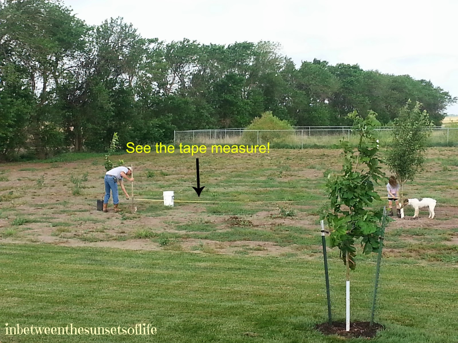 I wanted to share a few photos from the Cherry tree planting! PV joined her Dad and got right in there to help! For those of you that know my husband (and me), you will understand the need for the tape measure! Doesn’t everyone measure to have their fruit trees exactly the same distance apart??? WE DO! 🙂
