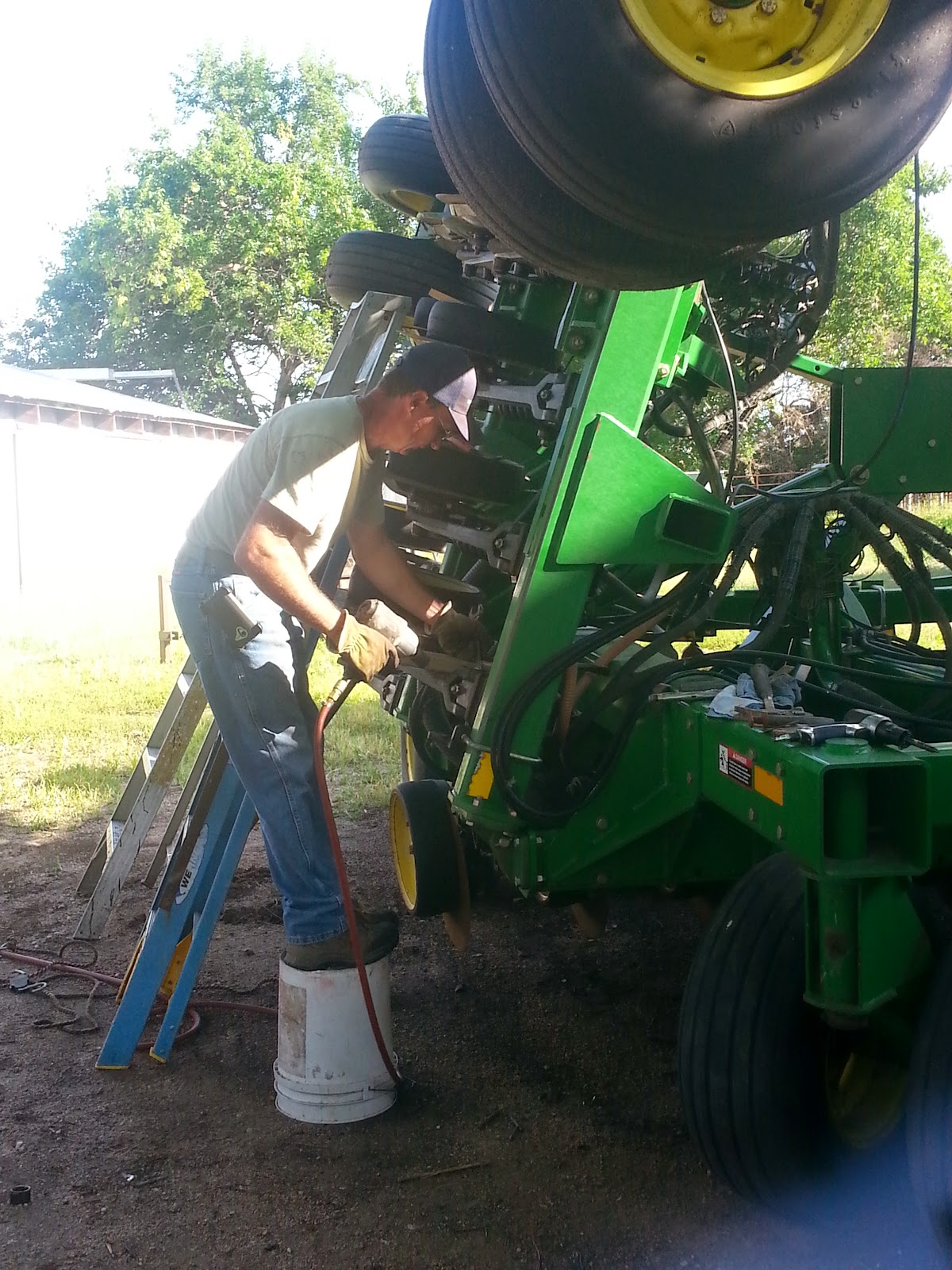 The Farmer is beginning to do some work on his grain drill and continuing a construction side job he started last fall. I saw it today and his work is quite good, if I may say so myself! 🙂 Dad in law is hauling grain periodically to the elevator.