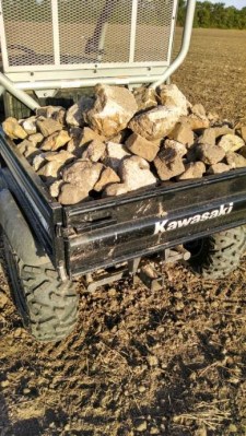 This morning before church, he made his way to the field where he plans to sow Alfalfa tomorrow. There was an old gas well in that field and alot of rocks and pieces of concrete left over. So not to hurt our equipment he did some early morning labor! Just alittle workout for him right? 🙂