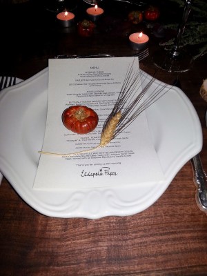 We eventually made our way indoors to the cozy dining area.  They have a sawmill at the farm as well, and you can tell someone is extremely talented. There were long walnut tables, handmade for us to sit at, with benches.  They were adorned with evergreen, red leaves, and what I presume to be heirloom tomatoes dried, with little tea lights to set just the right ambiance.   Simple and lovely.  I failed to get a photo of this.