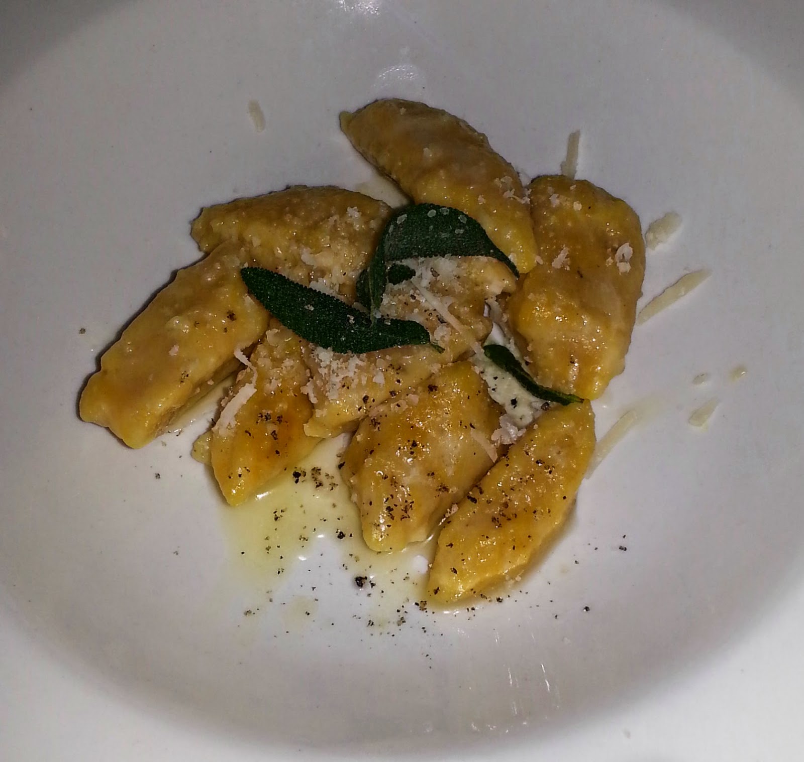 Butternut squash gnocchi with sage butter. I have never had gnocchi, but after this experience I plan to play with making it!  It would melt in your mouth and the sage butter sauce was divine!  I am not a huge sage fan, but those little dried sage leaves were the perfect touch to make this dish complete! It’s making my mouth water just thinking about it!