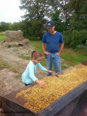 One of the benefits of having the calves for the winter is that our daughter can learn how to be responsible.  I happen to be in the farm yard on Sunday evening when it was time to feed.  She was helping Dad and Grandpa, and I am glad I at least had my smart phone.