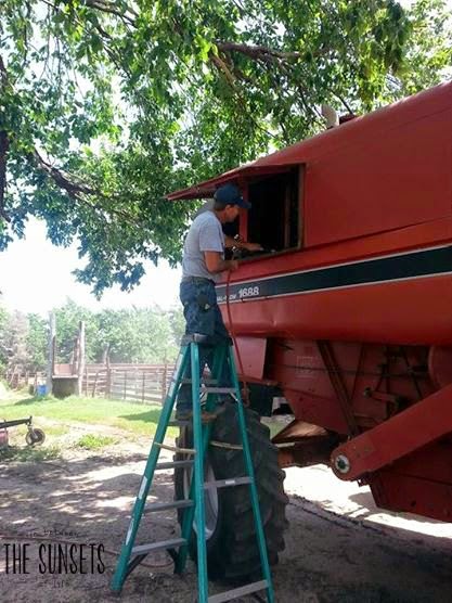 This is the combine our daughter has ridden in each year since her birth at harvest time.