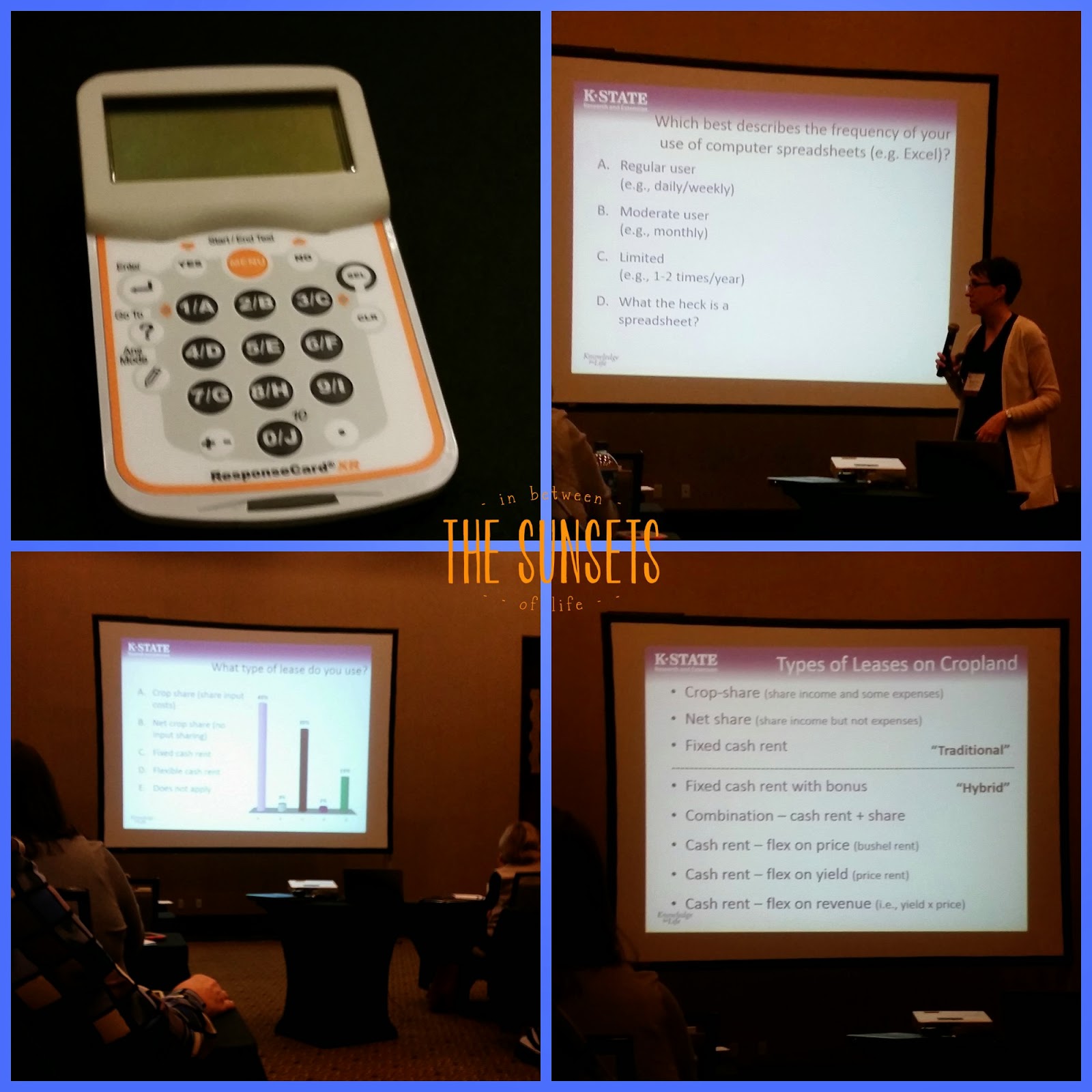 Another great thing about this session was that we were able to enter data in by a remote clicker. They were questions in regards to our farming operations. Then we could see the percentage of each answer from those in the room. Very interesting to see the diversity, yet similar things happening on farms!