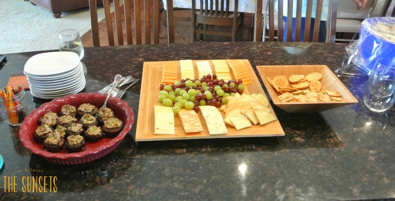 My sister and her husband brought an assortment of cheese, grapes, and crackers for us to munch on. I had some mushrooms I needed to get used up as we were heading out of town the next day, so I whipped up my recipe for stuff mushrooms!