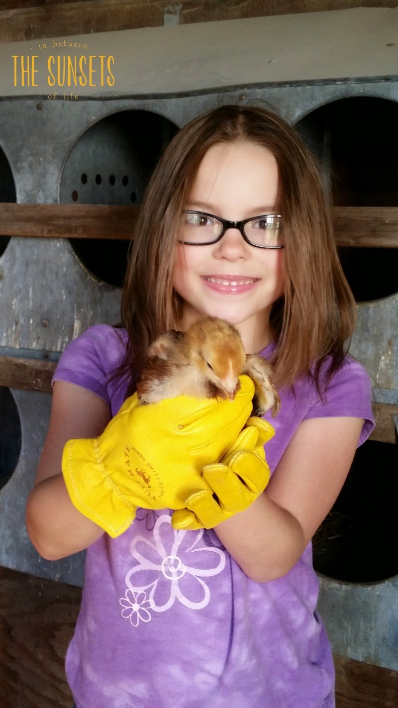 She insists on wearing her leather farm kid gloves! Not sure why but she always grabs them on our way to the coop! π Love having a farm kid at home!