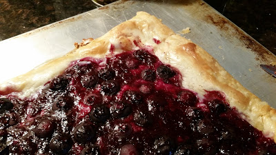 Harvest meal was roast, two salads, and a blueberry puff with cream cheese.