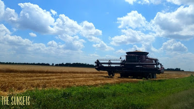 Milton finished one field he had started cutting yesterday. Then headed to try another one. The wheat looks really good on it but the straw still had green in it. So he was off to another field!