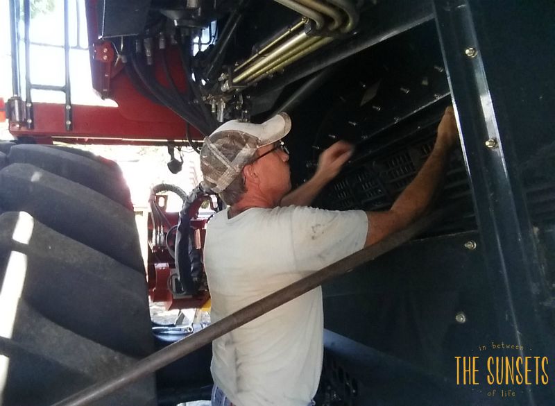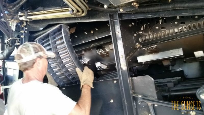 It was time to prepare for our next type of harvest here on the farm. Milton worked on cleaning up, waxing, and changing concaves on the combine. This photo was taken prior to the washing and waxing, he had it put away in the shed before I remembered to get one of his handy work!