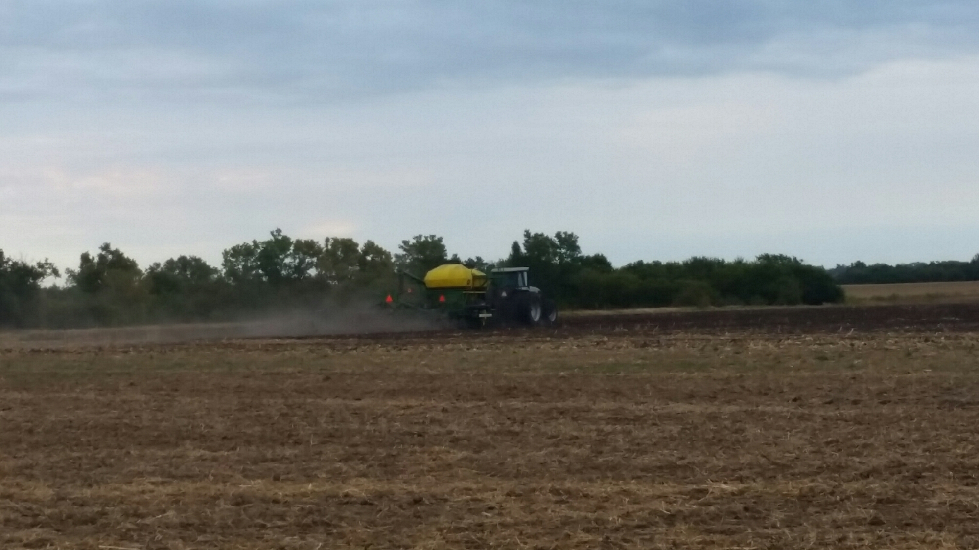 At 1:00 pm he exchanged the cultivator for the grain drill. He started sowing wheat and as I write this at 9:30 pm, he is still at it. Depending on how wet the field still is or fuel left, those are the factors that decide what time he will make his way home for a shower and some sleep.
