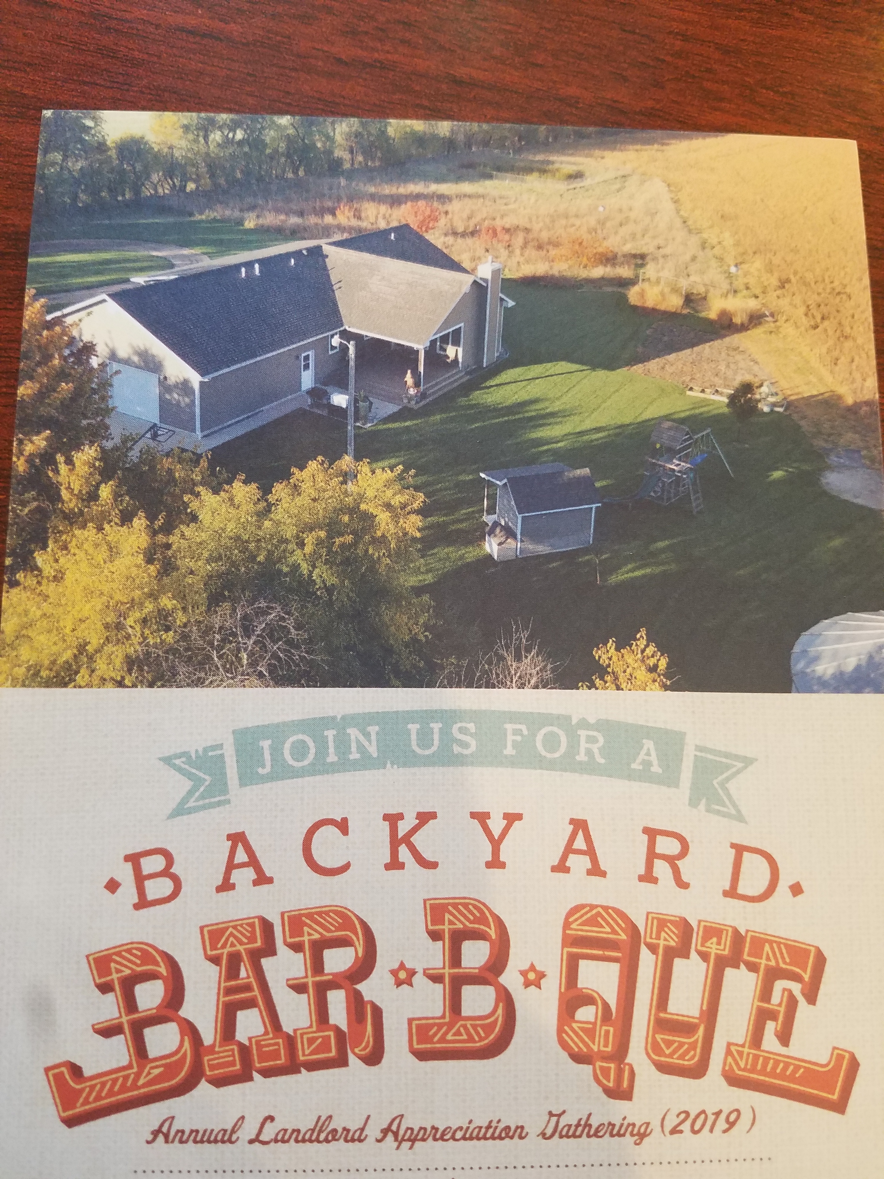 We hosted our annual landlord appreciation event this past weekend because we wanted to shoot for an outdoor barbeque. The days weeks leading up to May 4th only gave us a great deal of rain. Luckily the farmer was able to get the corn planted but there is a lot of water standing in some fields, ditches and the flower beds are mud!