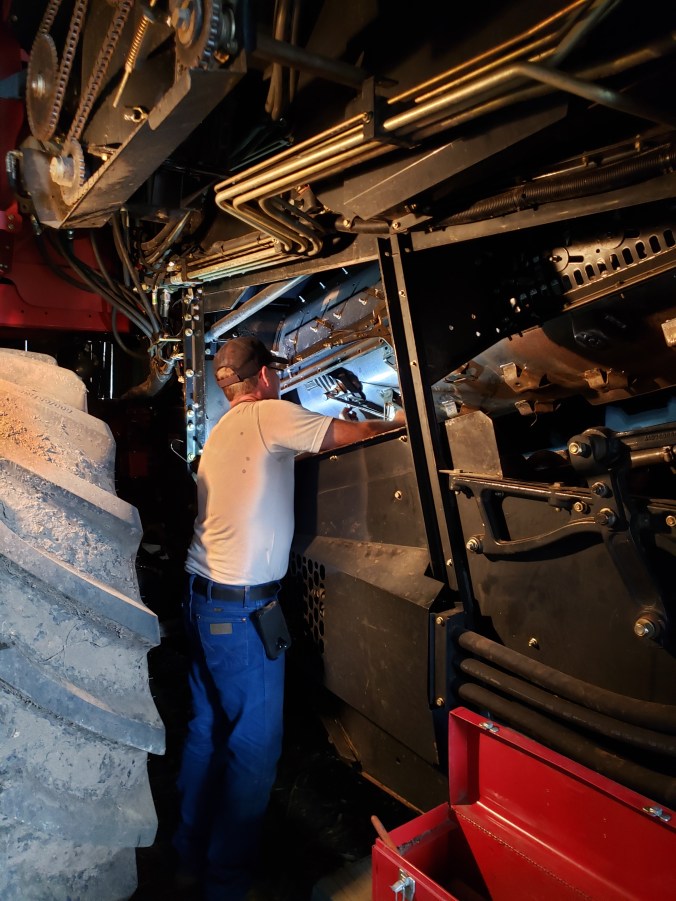The farmer has kept busy with preparing the combine for wheat harvest. Changing out parts and updating so hopefully things go smoothly during that busy time.