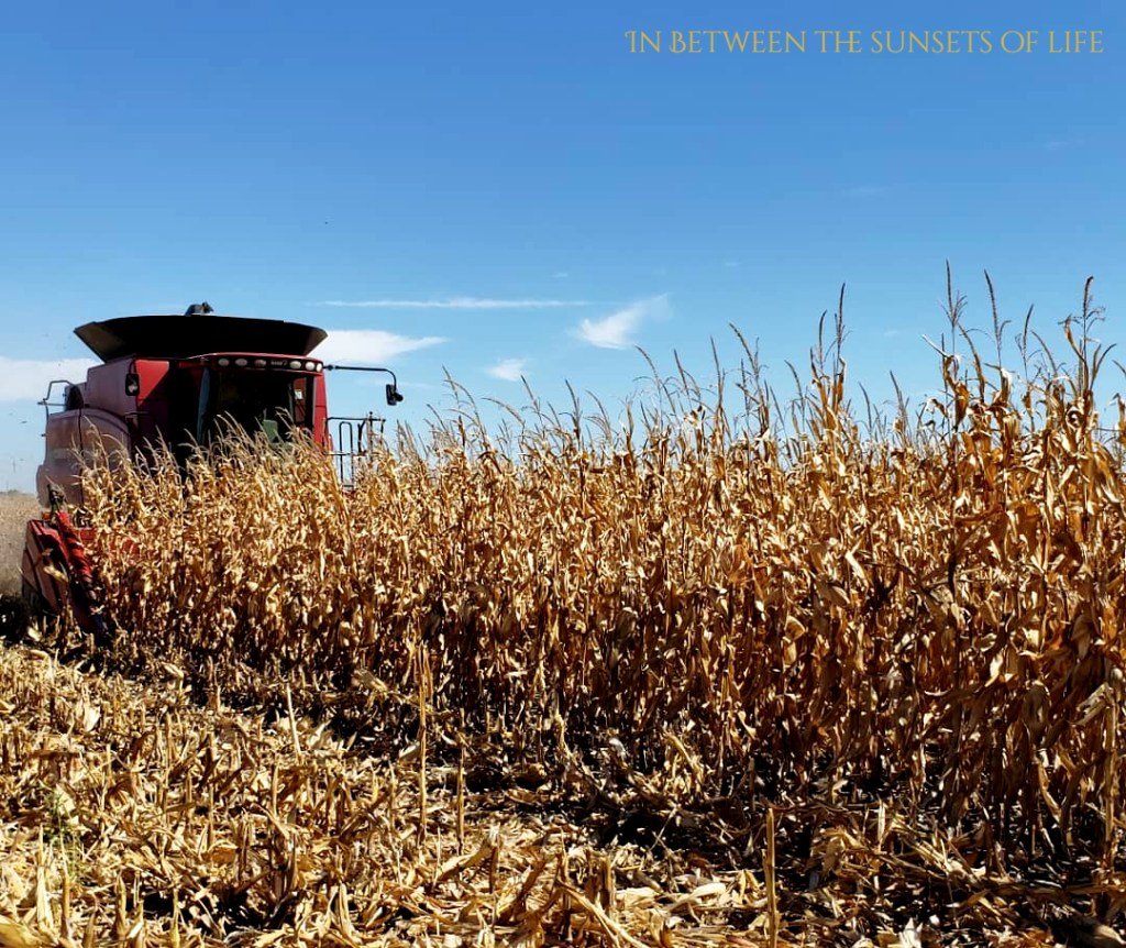 Our corn harvest began around September 9th and then stopped until the 23rd. The farmer went on his annual hunting trip and when he returned the corn was ready to go!