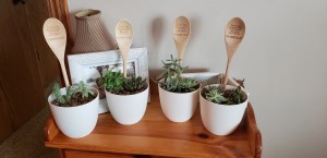 The other part of the gift was also purchased on Etsy and as I was scrolling for ideas found wooden spoons. I had them engraved and very impressed with the seller! We threw in some turtle chocolates and the folks left with something to grow, an utensil to use and some sweets to share! π