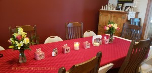 I’ll start with the table decor, it has changed quite a bit since the first few years of our VVDDP. In many aspects of my life I find myself gravitating to the simplier side of things. This year I just grabbed a $20 bouquet of flowers and lit a candle I had at home. We did use nice dishes and glasses, I didn’t go all the way simple with paper plates – just yet! π