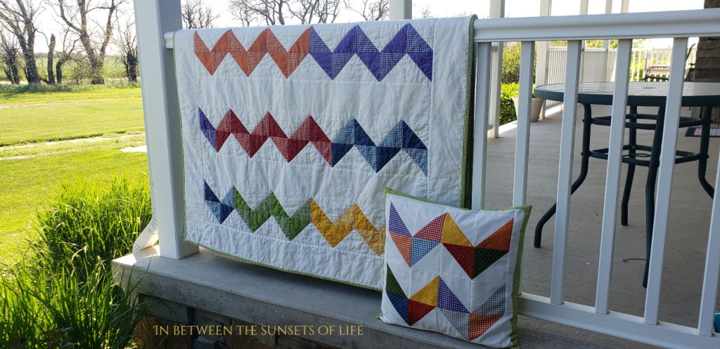 I found myself with another finished quilt by Mother’s Day in May. I knew the perfect outlet to have my next giveaway! I have a group of four Lutheran gals I have a Facebook group with and I surprised them by having the May one there for them. I really enjoyed making this quilt which I used some charm packs to create. The pattern was free and called Frenzy, extras were had so I made a pillow cover as well. I simply had them comment with what their favorite thing was about being a mom! My friend Jill won it! We have children in the same class, attend the same church and have agriculture in our lives!