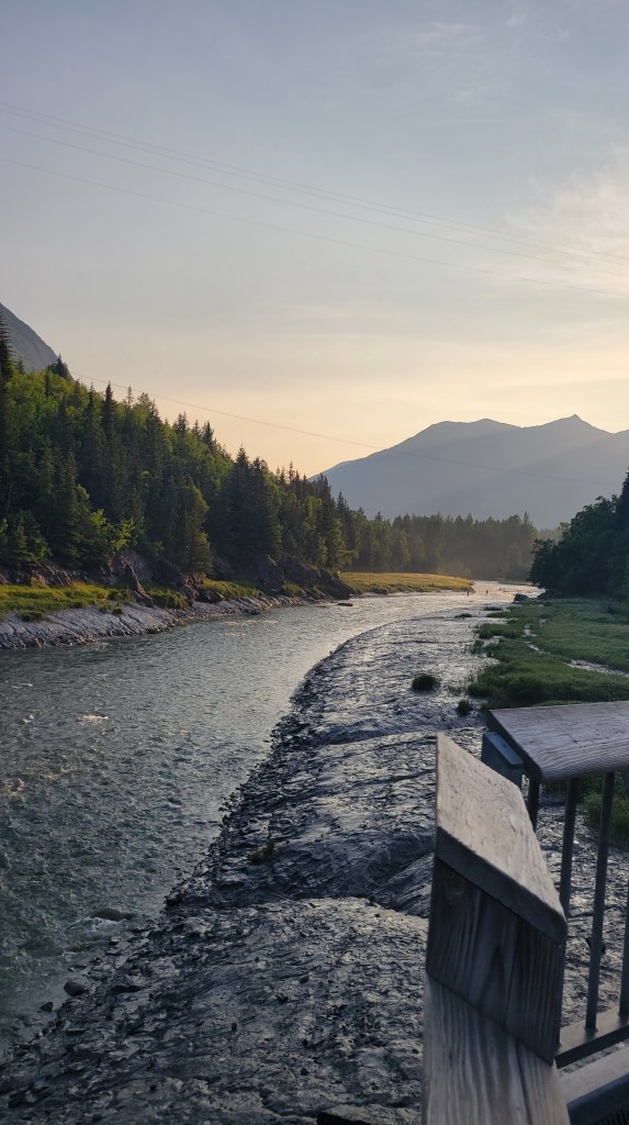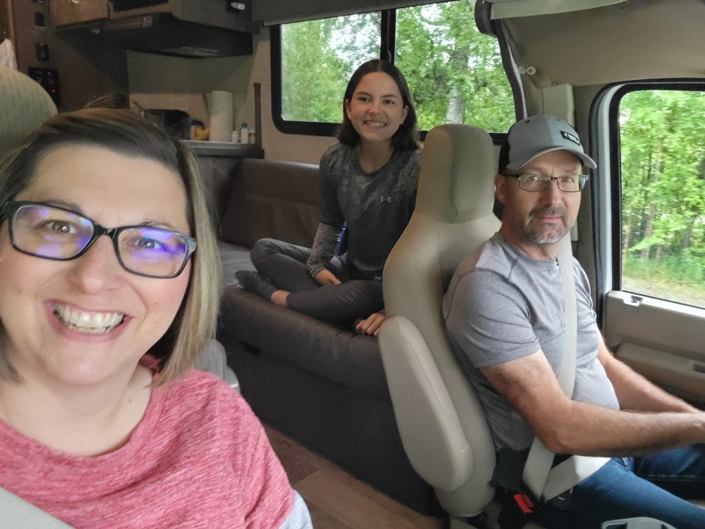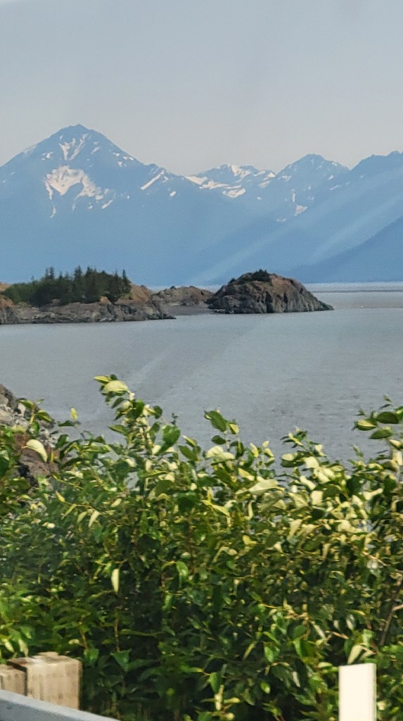 While staying in Anchorage in an RV park we have a funny story. Milton was checking our laundry and us girls were sitting a the picnic table by the RV. While driving by our site another camper guy said “hey, there’s a bear right there!” I couldn’t see because we were on the other side of our camper. So we hightailed it into the camper and watched as the bear got into a tent about 100 yards from us. Milton came out shortly after and watched from outside the camper. When this all happened I was videoing chatting with my older girls so it was kinda comical. They did warn that some times bears come into the park. Usually they only get into stuff when people camping with tents leave food in their tents.