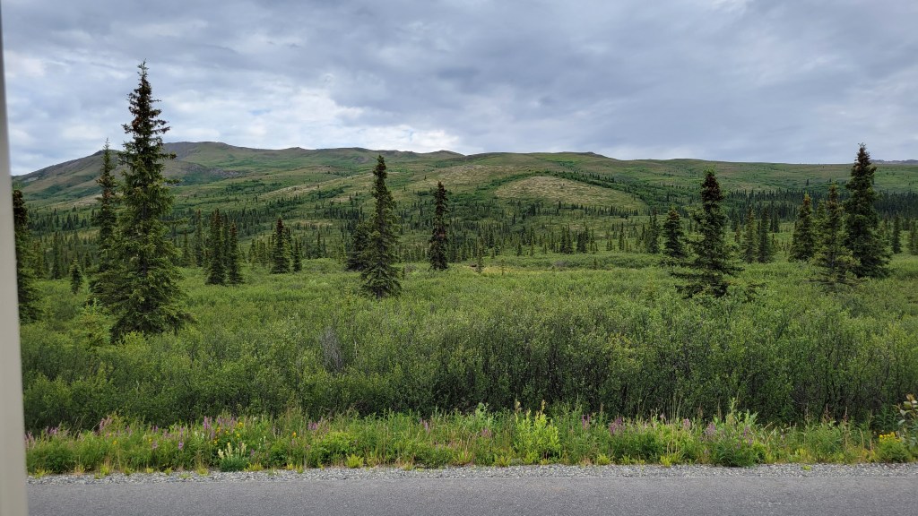 The next day we headed to Denali National Park where we camped in Savage River campground, hiked some trails, enjoyed the quiet and beautiful scenery. Along with that we took the Tundra Wilderness bus tour which we all enjoyed, it helped we had a great bus driver talking about all kinds of things. He was SO knowledgeable! We were able to see caribou, dall sheep, a wolf, a bear , birds and moose. Another day we hiked Mt Vista trail and also hit the Park Rangers dog sled area. Our daughter loves dogs so she was thrilled! They were not doing presentations due to Covid but you could still go in and pet the sled dogs and see them in their outside pens. There are no hook-ups camping at Denali National Park but they do have a dump station and even a little store with limited hours if you are in need of something. Outside of the park there are several places for lodging, shops and restaurants. Due to Covid again there was limited hours and some places had closed, Alaska from what we have heard and could tell are having a hard time hiring people to work. Savage Cabin Trail is a nice trail and well maintained and easy to do. Here are a few photos from our Denali stay!