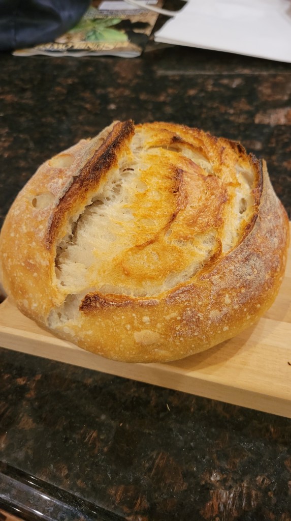 I have found two recipes that work pretty good in my kitchen and turn out most of the time for me. I’ve learned a few things and there is way more to learn but not sure how far I’ll dive into it honestly. I’d like to master a good loaf pan version, that way I could buy even less regular wheat bread from the store. I took a beginner class with Turner Farms out of Canada too. It was helpful. The two recipes I currently use are from Alethia Truly You and Wild Oaks Farms which I found on Instagram. Wild Oaks actually sells a dehydrated starter on their Etsy page. I like Altheia’s because it’s simple and less time consuming and turns out great. Wild Oaks make two loaves and since they live in my neighboring state of Missouri I figured the recipe might work well here in Kansas. Both usually turn out good and we have enjoyed them. I gifted some at Christmas as well.