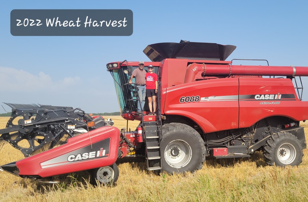 Our 2022 wheat crop consisted of 516 acres and we started on Wednesday, June 15th and finished the next Tuesday. It went quite smooth and we hauled all but our seed wheat to the elevator this year. The biggest bonus is that our 14 year old daughter drove the Case IH combine most of the time. Milton would open up the field for her and then let her go on her own! Milton finally got auto steer for the combine so that made it easier somewhat for both of them. We had the same guy drive trucks as in the past and then all I did was feed them and pick up from fields on occasion.